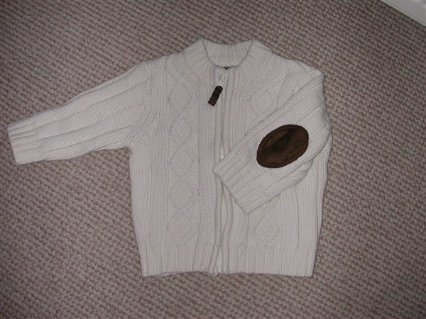 Pæn hvid strikketrøje fra H&M str. 74,næsten ikke brugt.Kom med et bud.