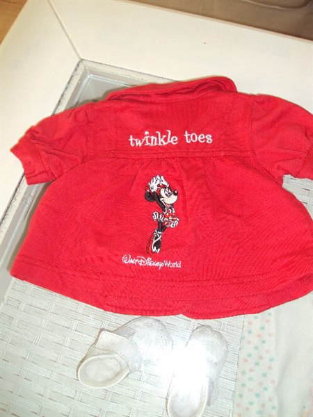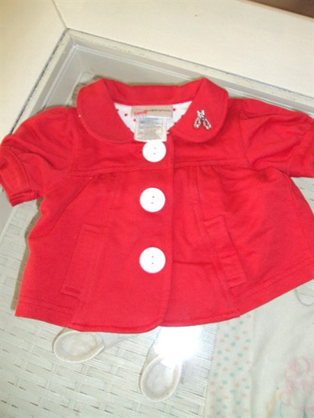 Super sød lille cardigan med minny bag på... den er kort i længden dog meningen... kan nok også bruges til en under 6 mdr da den ikke er så stort i det... er købt i usa...brugt en gang