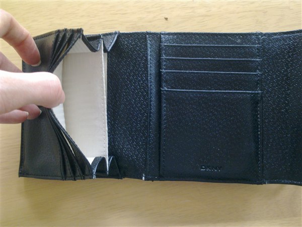 Str.: billede - plads til 7 kort, 4 andre rum, 1 rum til seddeler og 1 rum til mønter