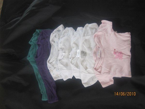 billede8+9: 7skt bodyer korte og lange ærmer str74, 10 kr pr del nogen mere brugt end andre, forsk mærker