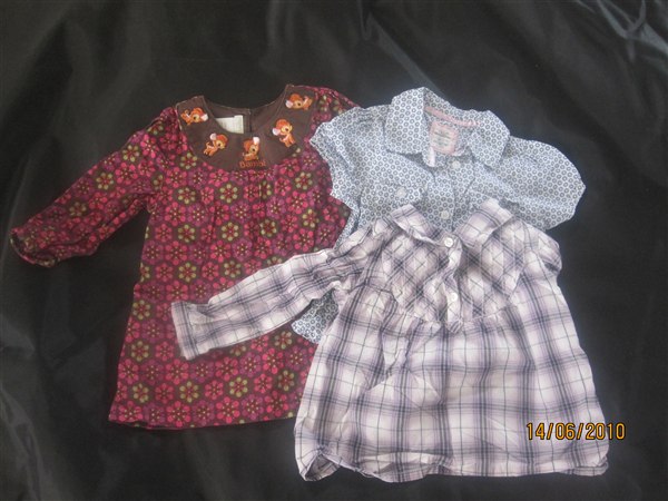 billede 21: kjoler de 3 bagerste str 62 og den anden str 56, 20 kr pr del, name it, little one, h&m næsten ikke brugt, den lyse af dem har dog et lille hul ved lommen formenligt fra en alram eller lignene.