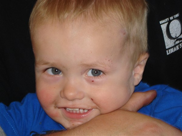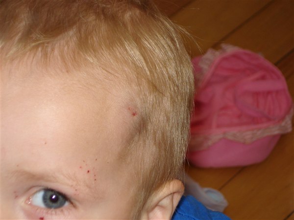 Det gav en gevaldig bule (og en lille), og vi skal efter ordre fra holde ham under observation de næste 24 timer... da den lille sidder ret tæt på tindingen