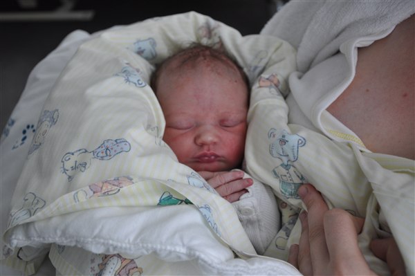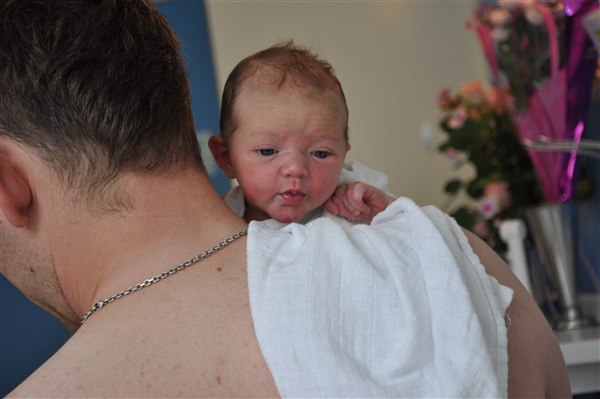 53 cm lang og 3670 gr. sund og rask. jordemoderen roste mig og sagde at hvis det ikke var fordi hun skulle hjem og sende sine børn i skole havde hun givet champagne, og at hun gerne ville være fødselshjælp næste gang