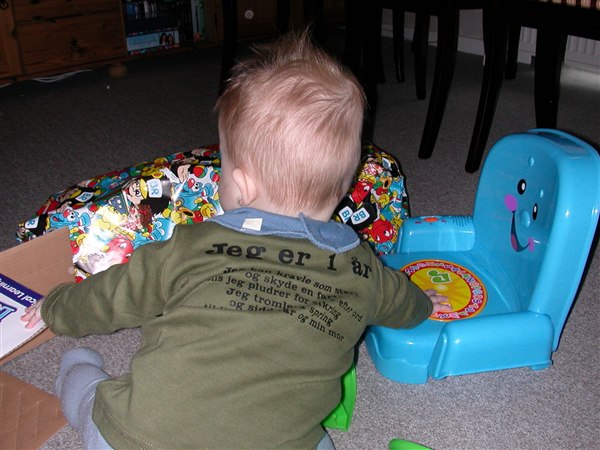 Alexander fik denne supersøde trøje i fødselsdagsgave af min veninde,men han kan ikke længere få den over hovedet