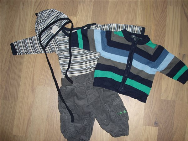 Billede 7: Sæt med L/Æ body, hue, fløjlsbuks og strikcardigan str 56 fra MM