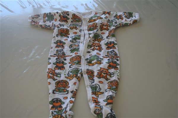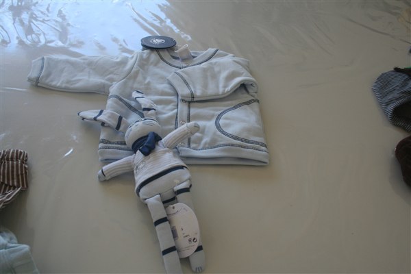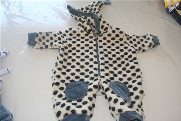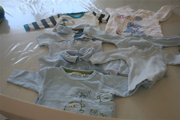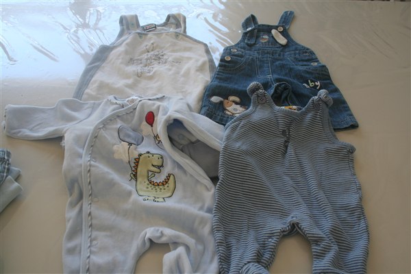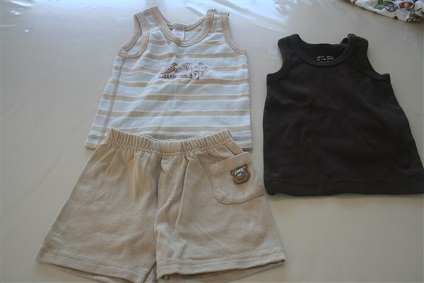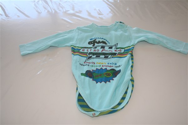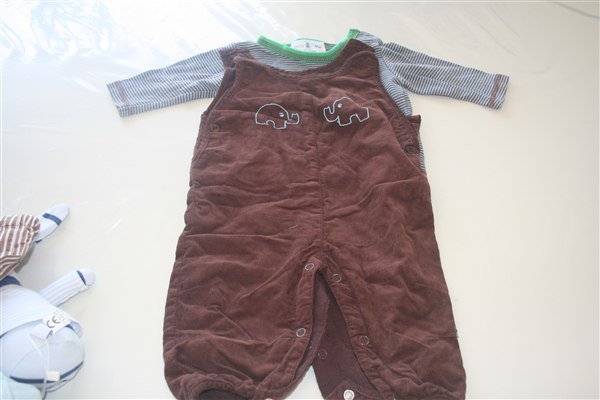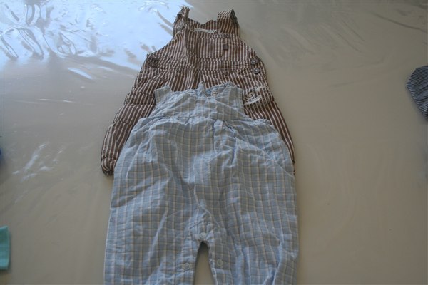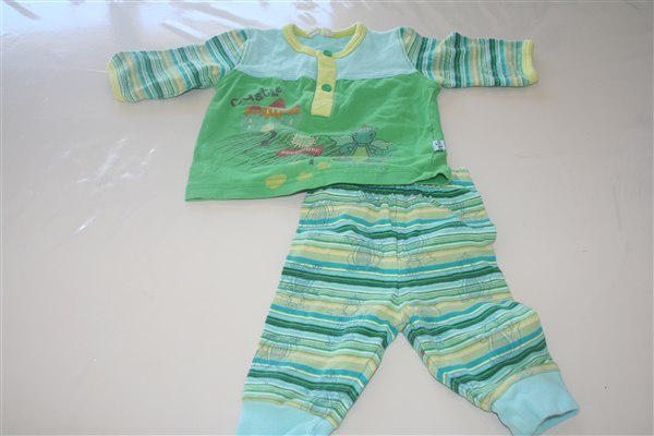 stribet dragt er en 74 langærmet body 74 og petit b med bamsen er en 62/68.