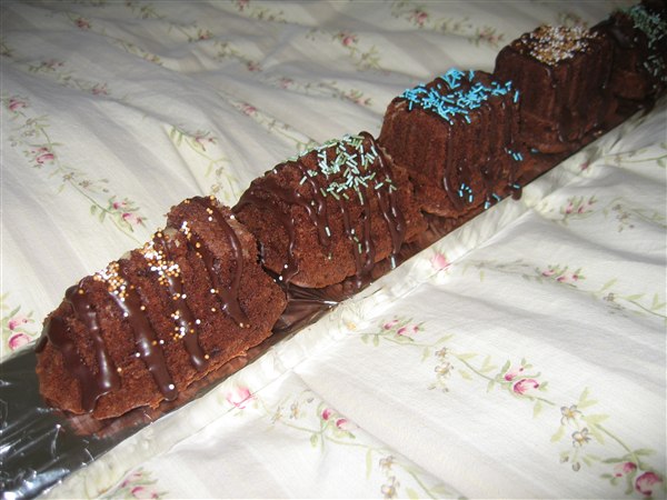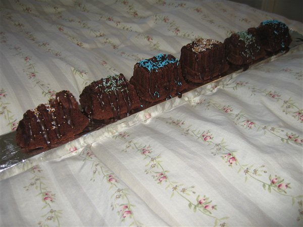 Jeg har lånt en fin form af min dp med toge/vogne. Har fyldt alm chokoladekage i. (AMO