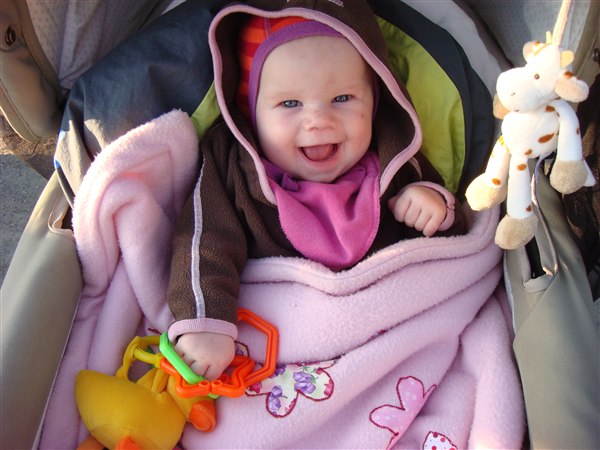 Clara er bare min lille glade pige! Hun smiler, griner og pludrer sig gennem dagen! Hun er sjældent sur og græder stort set ikke.