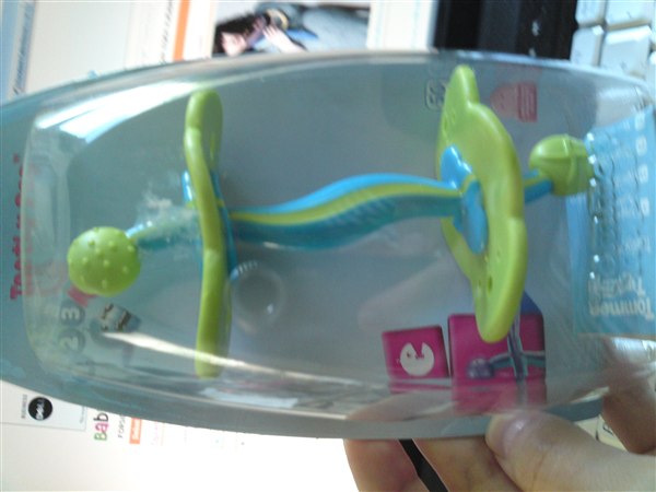 Vi har en bidestav fra Tommi Tippee og den er bare DRØN god.. Den Laura har er lilla og lyserød, men her er et billede i drengefarverne (havde nemlig købt en for Siw, herinde)