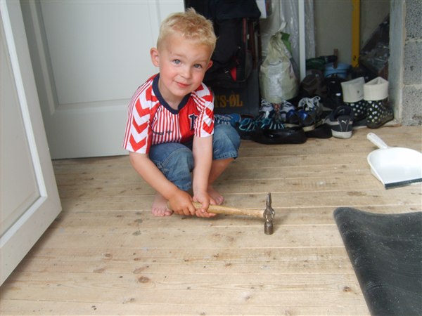 3. Oliver hjælper med at slå søm i