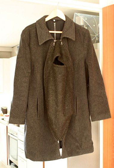 Den lækreste jakke af 90% lambswool og 10% cashmere, der kan bruges både når du er gravid, når du bærer barnet i bæresele både på mave og ryg og når du er helt normal ;-) Jakken er str. L (42-44)