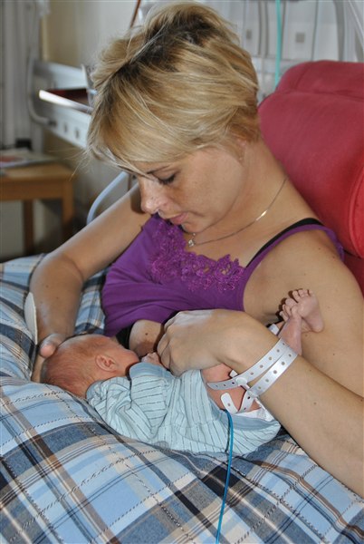 De spiser begge hos mig, men Mikkel halter dog lidt bagefter. Lægen mener det skyldes hans lidt hårde medfart da han kom til verden. Hans hjertelyd faldt markant lige inden han blev født, og han var meget tæt på at blive taget med sugekop. Jeg fik dog presset ham ud lige tids nok.