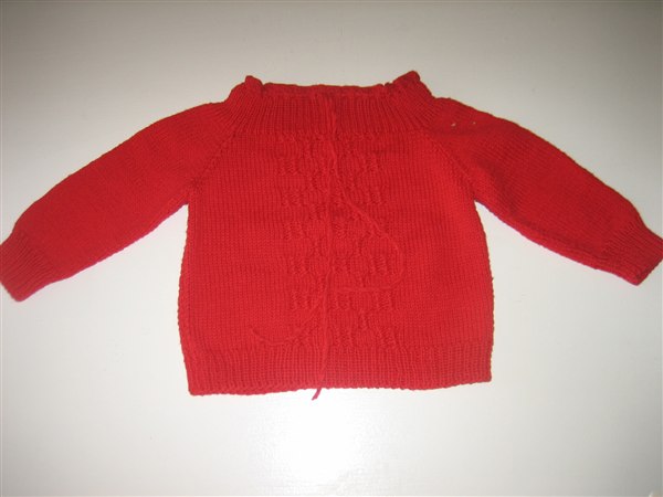 Hjemmestrikket bluse - rød - str 56 - god men brugt.