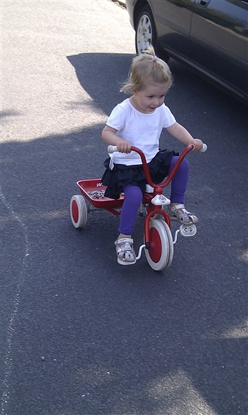 Nårh, hvor er hun sød og glad på sin røde cykel. Dejlige billeder - I forstår da at nyde det
