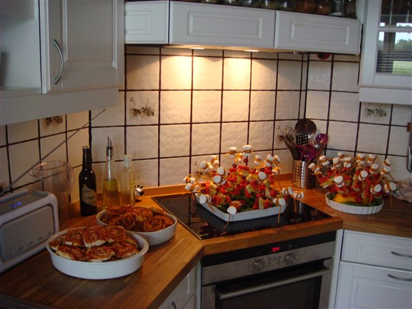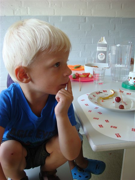 Basse holdt fødselsdagsformiddag i børnehave i fredags og det var bare så hyggeligt! Jeg havde hugget ideen med frugtspyd med skumfiduser og snor og så havde jeg bagt pizzasnegle, det hele var et kæmpe hit.