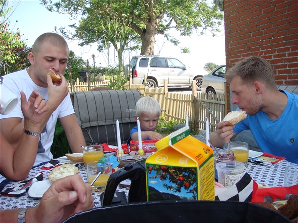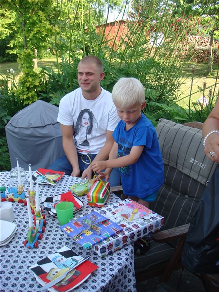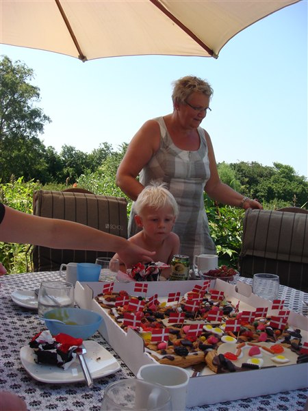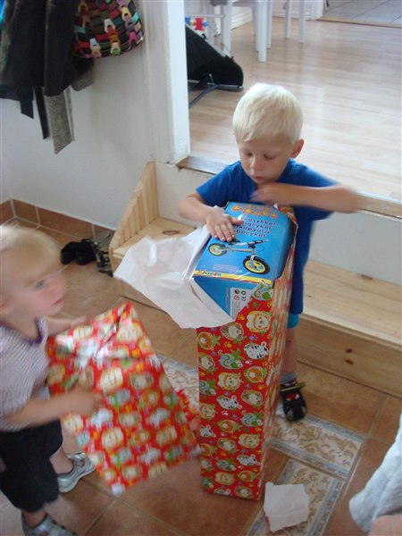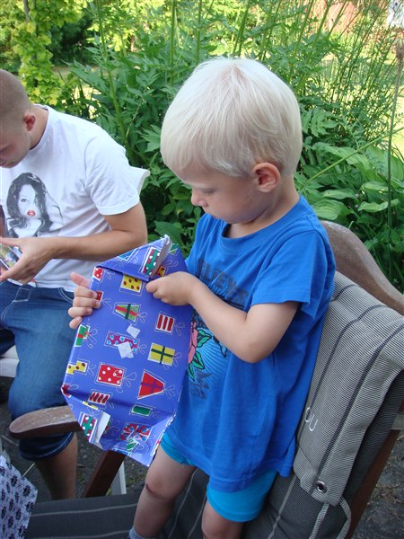 Lørdag formiddag kom familien til morgenkaffe og Bastian nød opmørksomheden og fik nogle super gaver