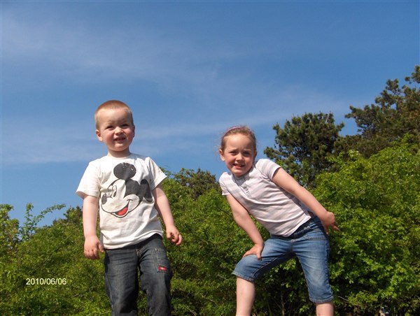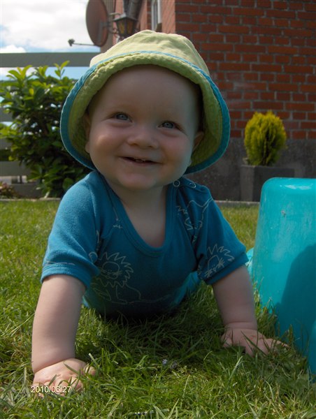 Noah... Hvad kan man sige... Efter vi har fået ham har vi fundet ud af, hvad det vil sige at have en "rigtig" dreng... Han skal helst slå og sparke på alt hvad han kan komme til, og han er frygtløs... Han hopper ned fra alt, slår kolbøtter ud over sengekanten, og kravler rundt på alt. Men heldigvis stopper han (som regel) når vi beder ham om det. Han snakker som et vandfald (det gør hans søstre også, gad vide hvor de har det fra?) -I børnehaven er de klar til at tage i mod ham, da de mener han er mere end klar til at starte, men han fylder altså først 3 næste år i april!!