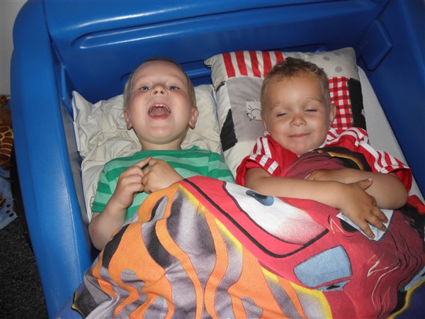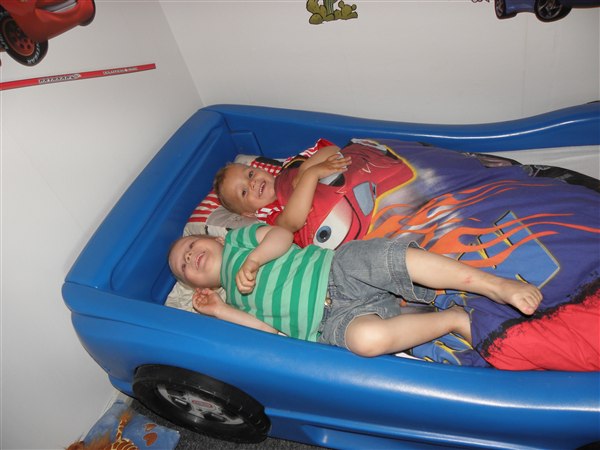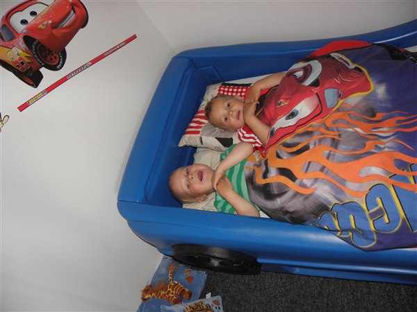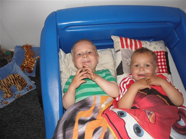 nope, men de skulle også bare hygge lidt inden sengetid.William viste sin bilseng frem til Mikkel der vist faldt til rette med det samme.