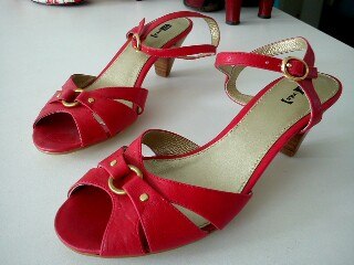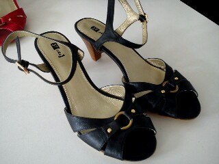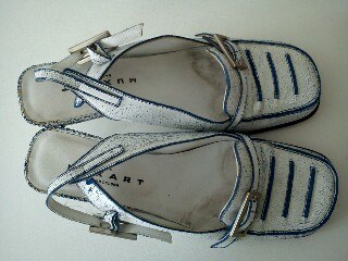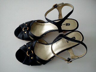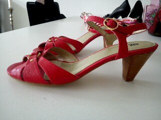 De fleste sko er str. 37, og det meste af tøjet er str. small - medium.