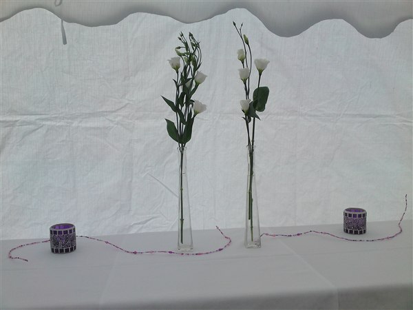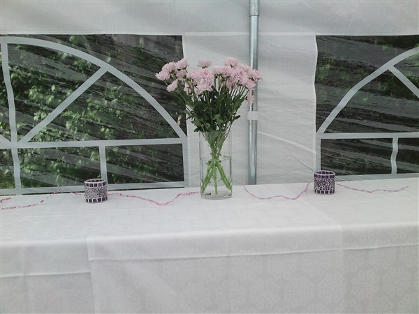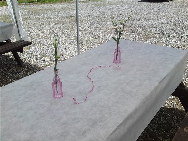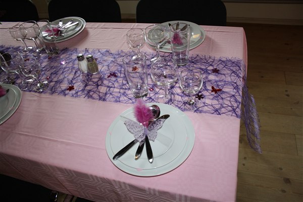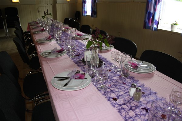 Vi var omkring 70 mennesker.. Først var vi nede hos os selv hvor jeg bare havde foldet kageservietter til åkander og dækket bordene med lys, blomster og lange "perlekæder" til middagen var vi oppe på Gjern Golfresort og der havde vi bordplan (som du kan se på billederne)