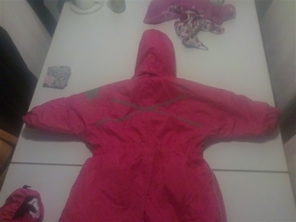 pink mikk-line flyverdragt+ matchende futter.. flyverdragten er str, 80 og futterne er str. 1. ingen slidmærker, men i velkro sidder der lidt fnuller... alt er self vasket inden afsendelse og kommer fra ikke ryger hjem... tynd hue ffra minymo.