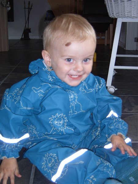 Og selvfølgelig synes jeg selv, at min søn er fuldstændig bedårende i det blå sæt, med tilhørende "røjsere"