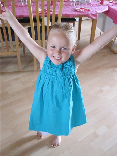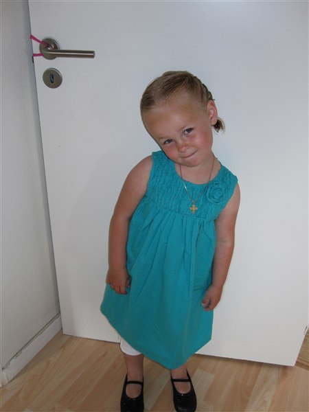 Mange tak, ja kjolen fremhæver hendes dejlige blå øjne, så det var SKØNT hun ikke valgte en lyserød kjole...