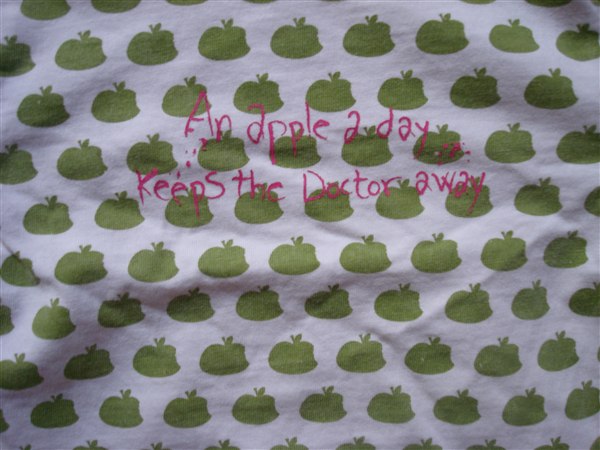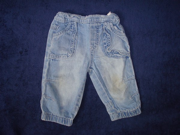 Snoopy bukser med skrift på rumpen, og et lille billede af nuser foran (nederst på det venstre bukseben)