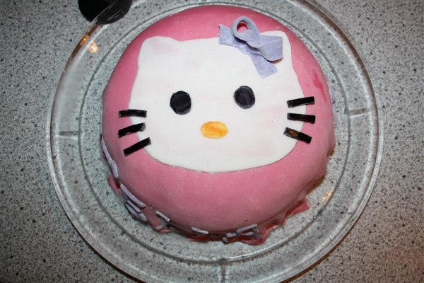 Stella eeeelsker den, så moderen her måtte bide hadet i sig og tilmed lave kage med den lede kat på