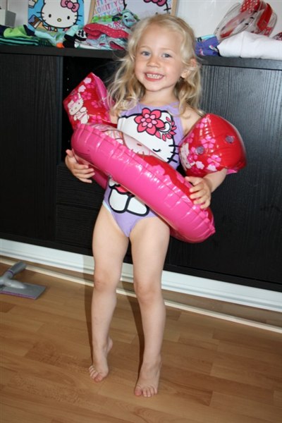 (Og ja, den er både på badering, badevinger og badedragt)