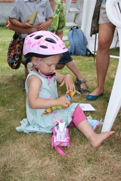 - Jeg tror ikke det er nødvendigt at fortælle, men hun fik forresten en ny cykelhjelm den weekend