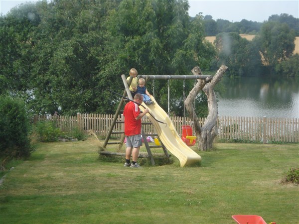 Så er der et af Benjamin som er kravlet på på vores rutchebane, men tør ikke selv rutche ned... Der er nemlig højt ned for sådan lille dreng...