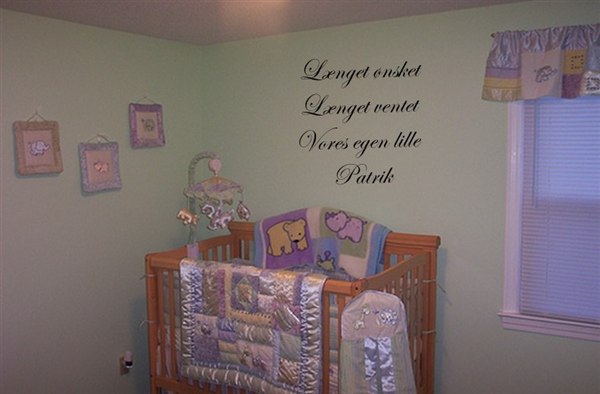 Lav et personligt citat, dit yndlingsordsprog, en kærlighedsærklæring til dit barn eller mand. Hæng det over tremmeseng, juniorseng, ved puslebord osv osv