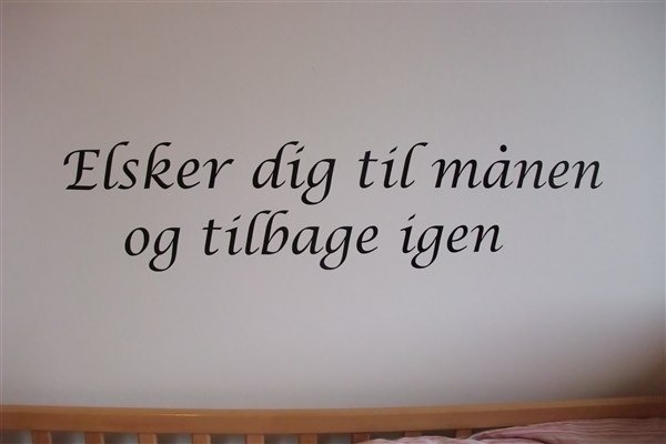 - Når du bestiller, skal du også skrive din tekst, som du ønsker den skal være på væggen (F.eks. om teksten skal være centreret) Jeg kopiere din tekst direkte ved ordre, så husk at dobbelttjekke stavning, store bogstaver osv.