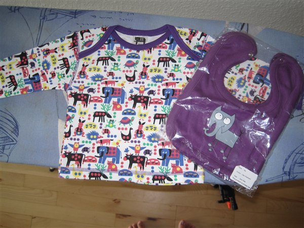 Også har jeg en trøje og to hagesmække til salg. Trøjen er str 68, men er god stor i str.... Samlet pris 200 kr.