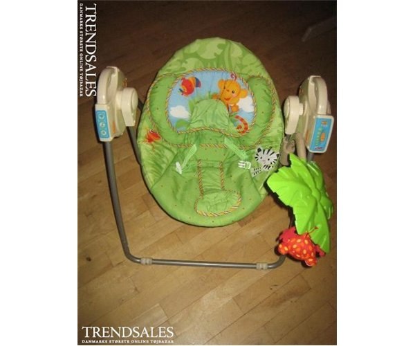 gyngen har 5 forskellige gyngehastigheder. Den spiller også behagelige musik. Der er os sele for at fastgør barnet med.