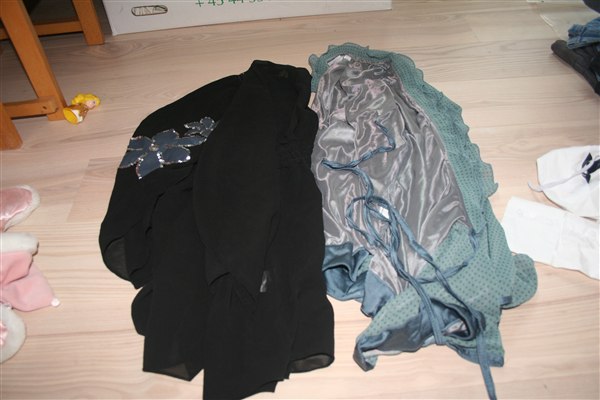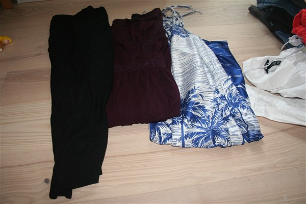 1 ukendt kjole/tunika i hvid og blå farve. med stropper uden ærmer