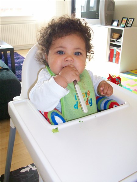 ja også spiser han stor set alt nu - brød med korn i og krydder mad og andre små ting.