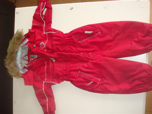 Flyverdragt brugt en sæson som 'reserve', str. 86-92. Endnu ikke vasket, så lidt er den brugt. Mærket : Colour kids, købt i Sportsforretning.