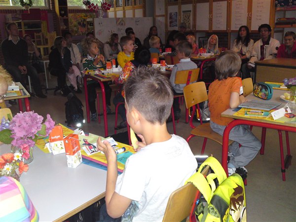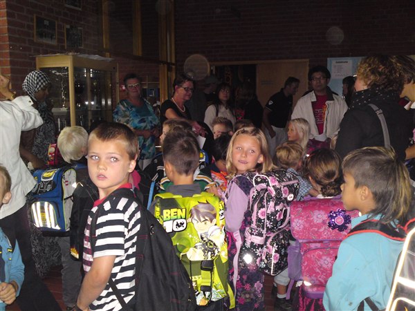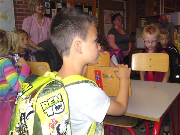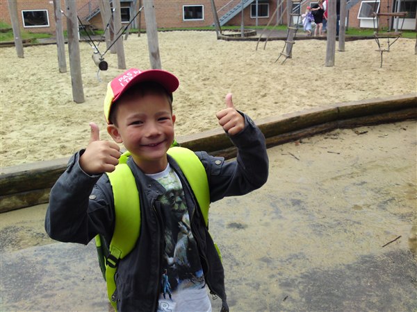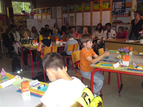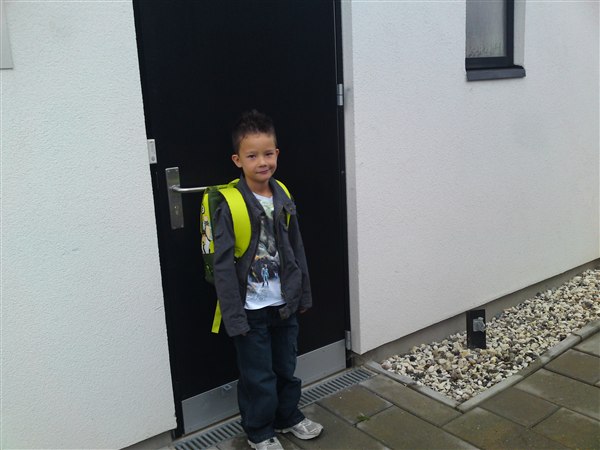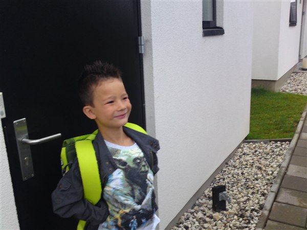 vi skulle møde ude i skolegården kl 9 og Mathias var bare mega spændt, men fordi det regnede blev vi samlet inden for, hvor rektor lige sage lidt og så blev de råbt af deres klasselære hvorefter de de skulle over i deres klasser, og bagefter blev vi sendt ud for at drikke kaffe, så de havde en time alene med læren, bag efter kom vi tilbage og fik nogle informationer også var skole dagen slut, Men Mathias havde en super dag og glædet sig at komme i skole igen idag