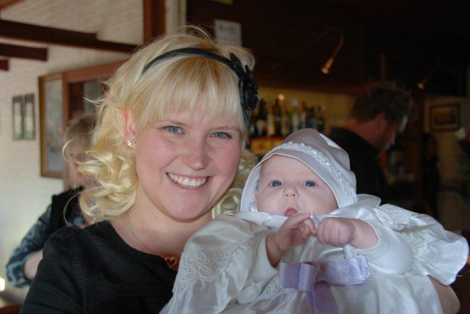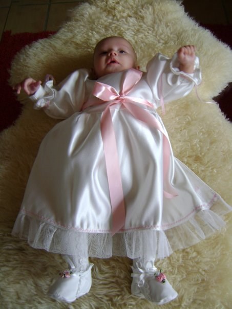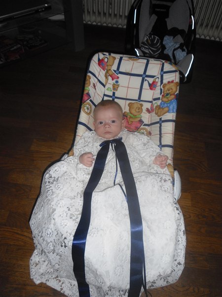 Emilie er døbt i min kjole som min mor selv har lavet (den med blomster) Den er 28 år gammel