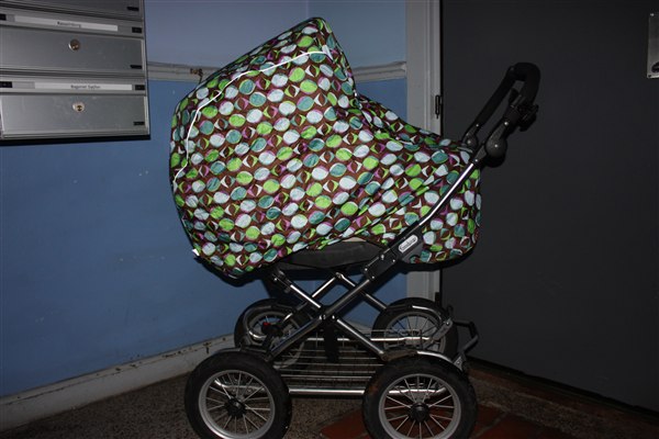 Tilbehør: 2 regnslag (sort trille-regnslag og et grønt/lilla fish fra Gaia & ko), hvid babysele (til barnevognen), sort kørepose, evt. et ståbræt til søskende og en solskærm (uv-beskyttelse) der kan bindes på kalechen.
