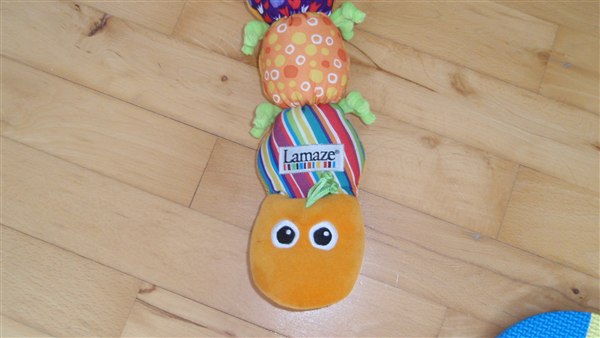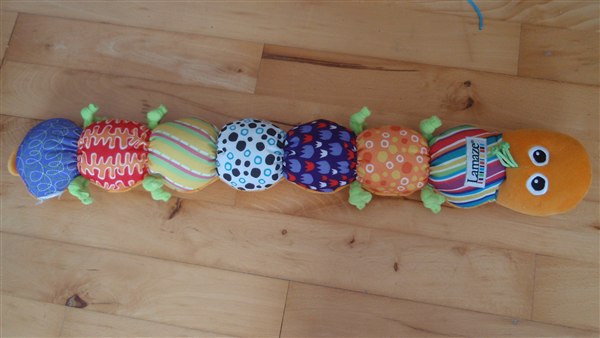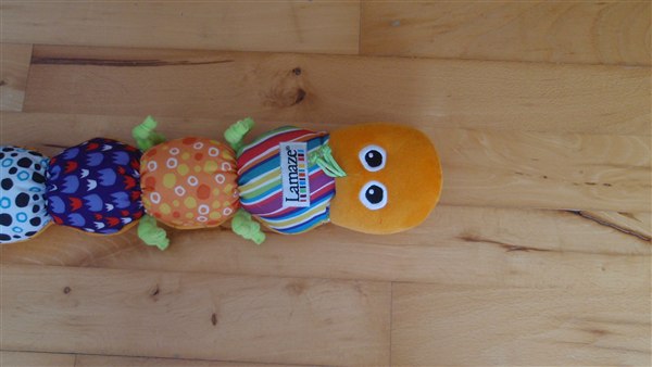Lamaze, Sjov målelarve med mange overraskende rasle-og knitrelyde, samt musik. Larven fra Lamaze kan bruges til at måle barnet med og fungere samtidig som skønt aktivitetslegetøj.