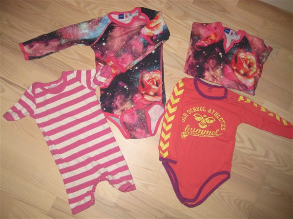 Kristina V skriver: Molo body og matchende heldragt str. 92. Rigtig fin stand Hummel body str 92, god med brug, dog en masse huller ved kanpperne Katvig sommerdragt str. 80