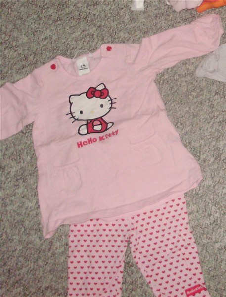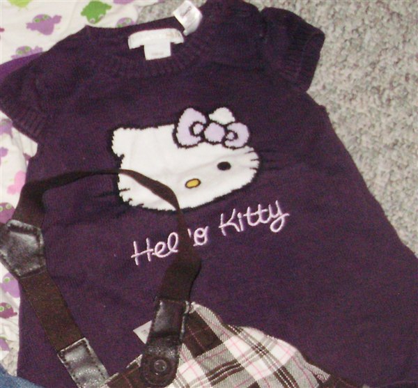 Det er ex. Baggy bukser med et par knapper på benet og tunikaer med falsk lukning med hello kitty knapper.