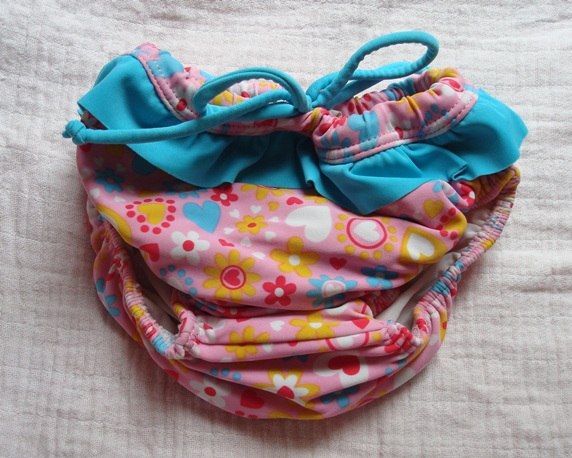 Badedragt, størrelse 70 cm. Med bukse-ble effekt - 20 kr. + porto.