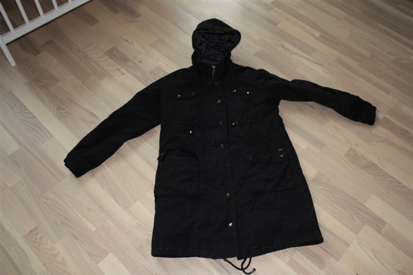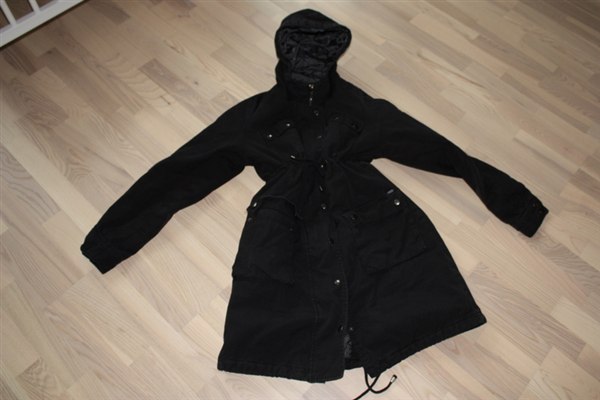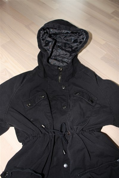 Jakken er en størrelse S - men jeg vil vove at påstå, at man også vil kunne bruge den hvis man er en str. xs eller m.