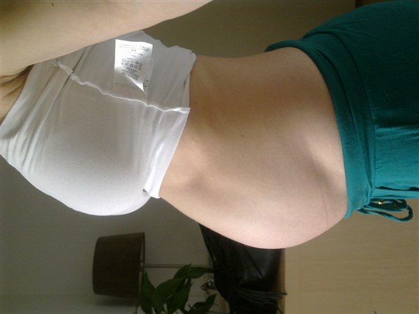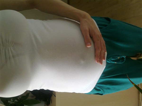 Hvis du vil sige det ville jeg gerne høre hvor meget de skønner babyen til at veje på nuværende tidspunkt og hvor meget du har taget på...for du ser stadig ud til at det hele sidder på maven og at du ikke har taget på andre steder...