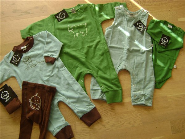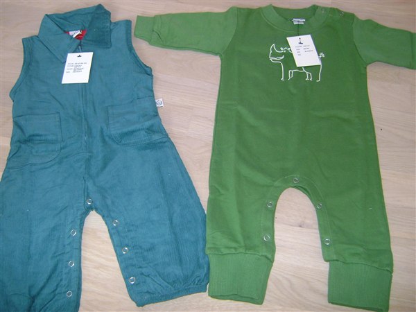 Har en lys blå heldragt ( som den grønne ) med brun ribkant