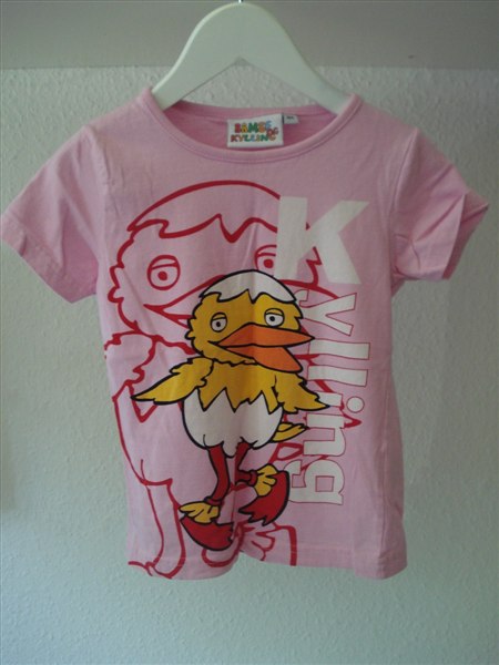6. DR, tshirt med kylling str 4år, 15kr (AB)